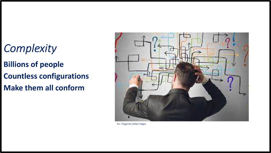 o Complexity (cities, corporations, countries, cars, cell phones, sewage, Wi-Fi, medicines, missiles, buildings) which required