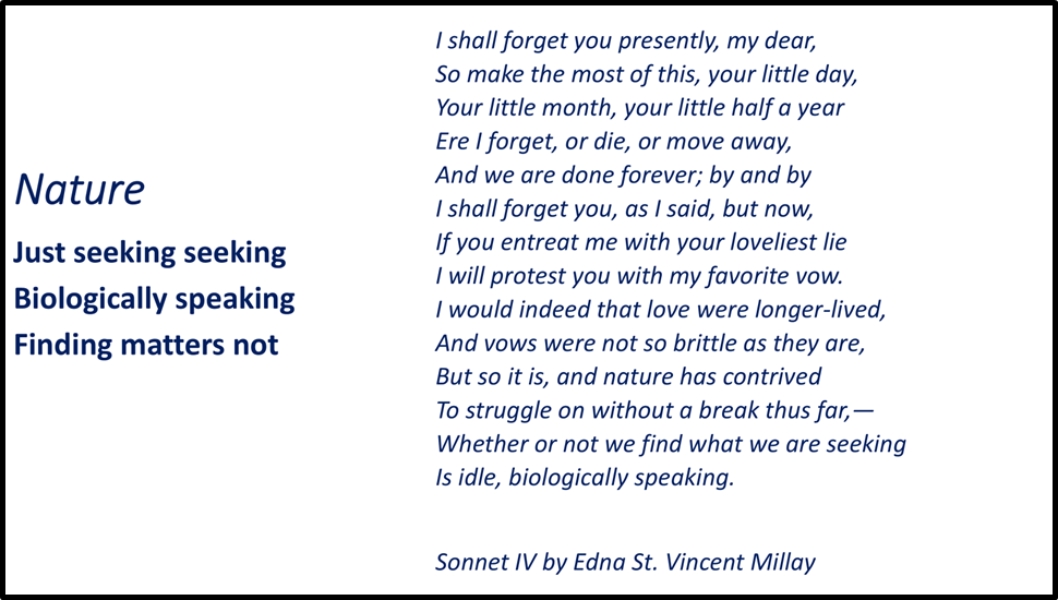 In addition, I gifted you the ability to conjure: to make things up so that you might feel certain. But “to seem rather than to be” was my trick to keep you guessing and keep you moving – painfully, I know, at times.