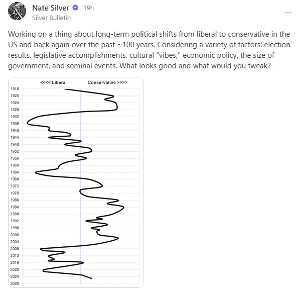 I like this chart by the acclaimed statistician, Nate Silver. More evidence of the We/Me cycle: