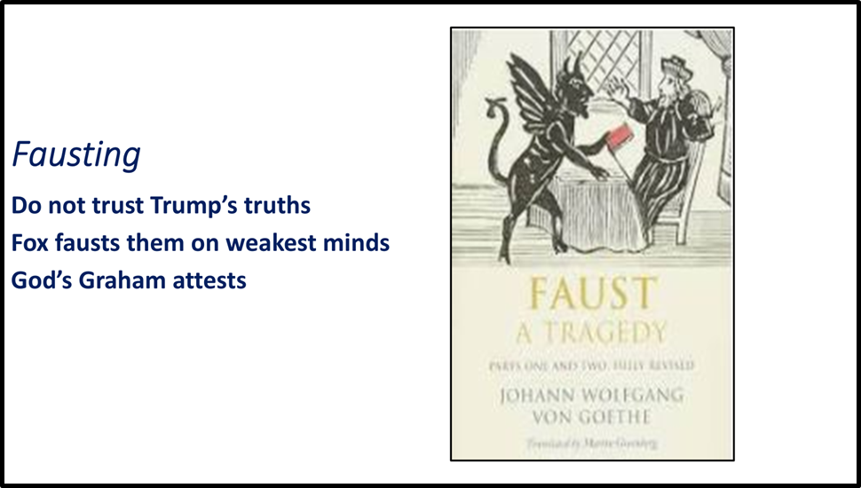 Alas, my ire and blood pressure rose while researching too. I read right wing books by Limbaugh, Carson, et.al. They were disappointing and did not give me a clue as to why intelligent people support Trump. I liked reading the New York Times op-ed pages because the NYT employed four intelligent intellectuals from the right and four from the left. Reading them all gave me a more balanced view than I wrangled from other sources. A bummer though – all 4 on the right eventually became Never Trumpers and that didn’t help me find an answer to my quest. I also followed three pro-Trump Facebook groups where the content was skillfully articulated and logically presented. To my chagrin, I later found that they were written in Russia, by Russians, for Americans. The groups disappeared when the CIA caught on. I am probably on some watchlist now. Kate and I watched Fox News to immerse ourselves in the other side. Watching Tucker BBS (before being sacked) and Sean made us vomitous and we could not keep it up (or down?). They were articulate and logical, but it all seemed like slick, emotional, curated propaganda to us.