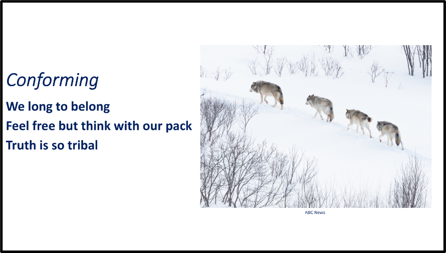 o Conformity via social binding Subas in order to operate efficiently and effectively as well as rationalize some pretty bad behavior (segregation for example) and